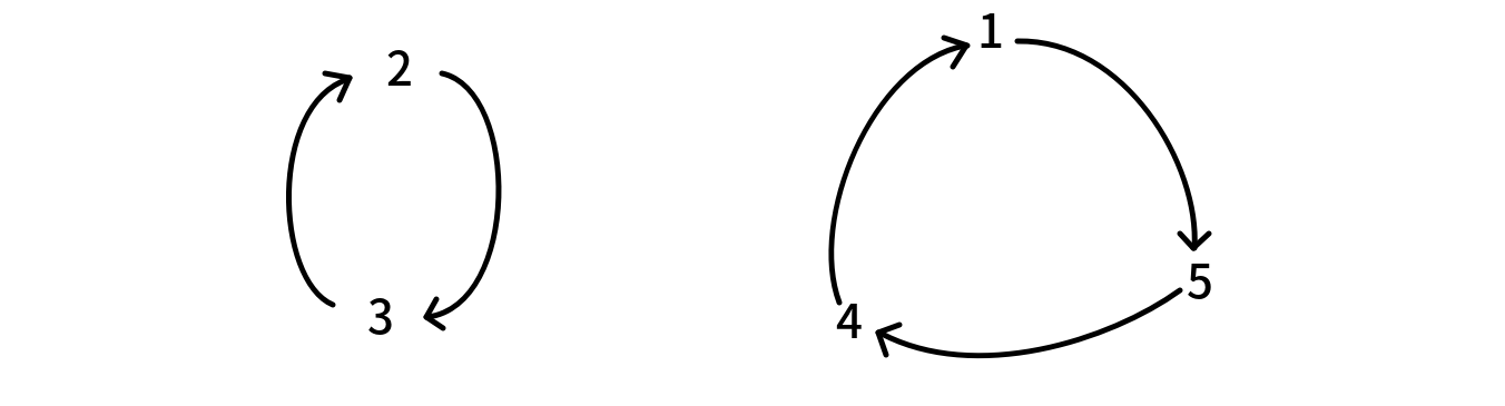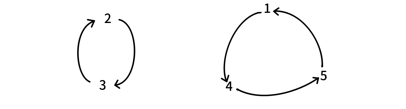 一个排列,是由若干个置换环构成的。例如 有两个置换环: